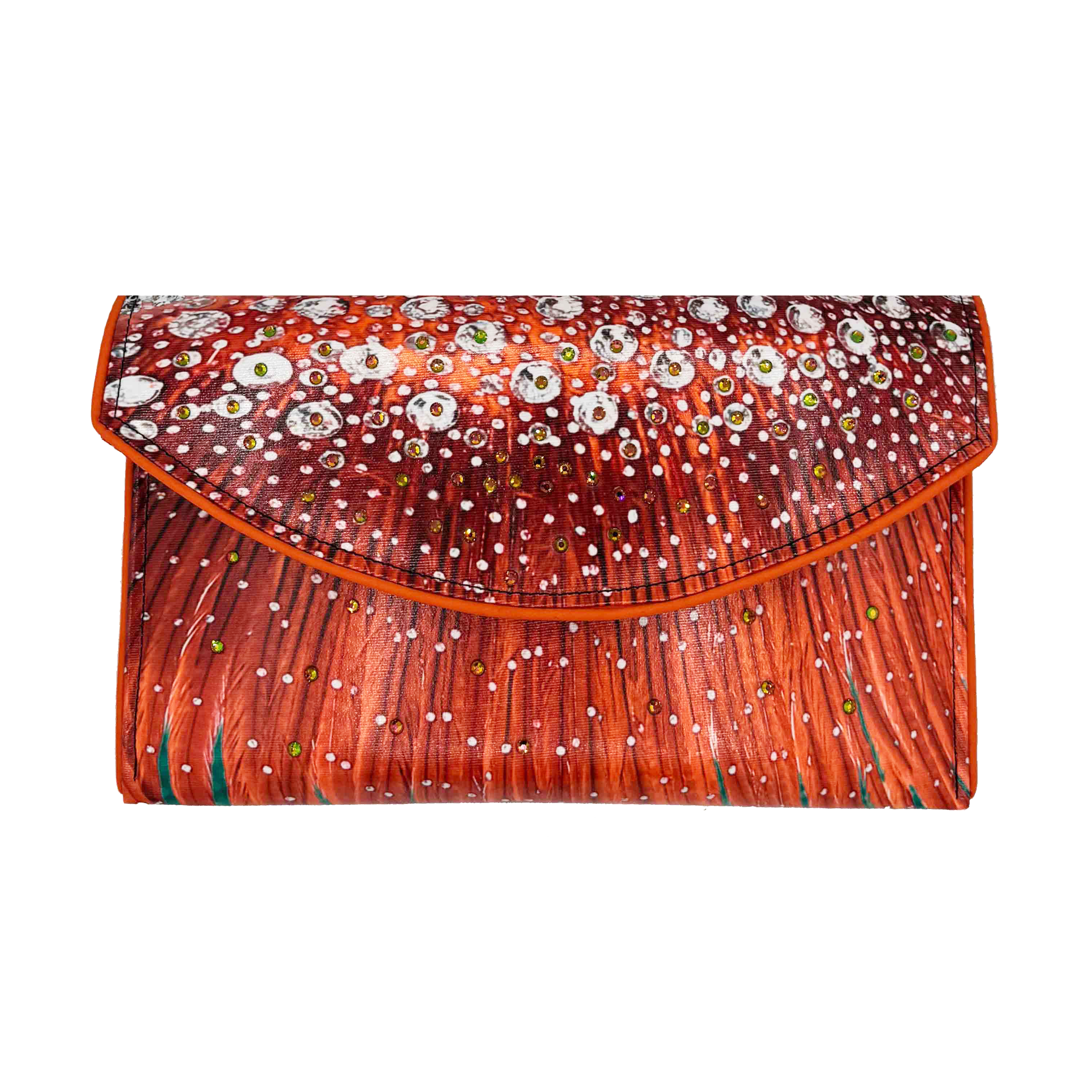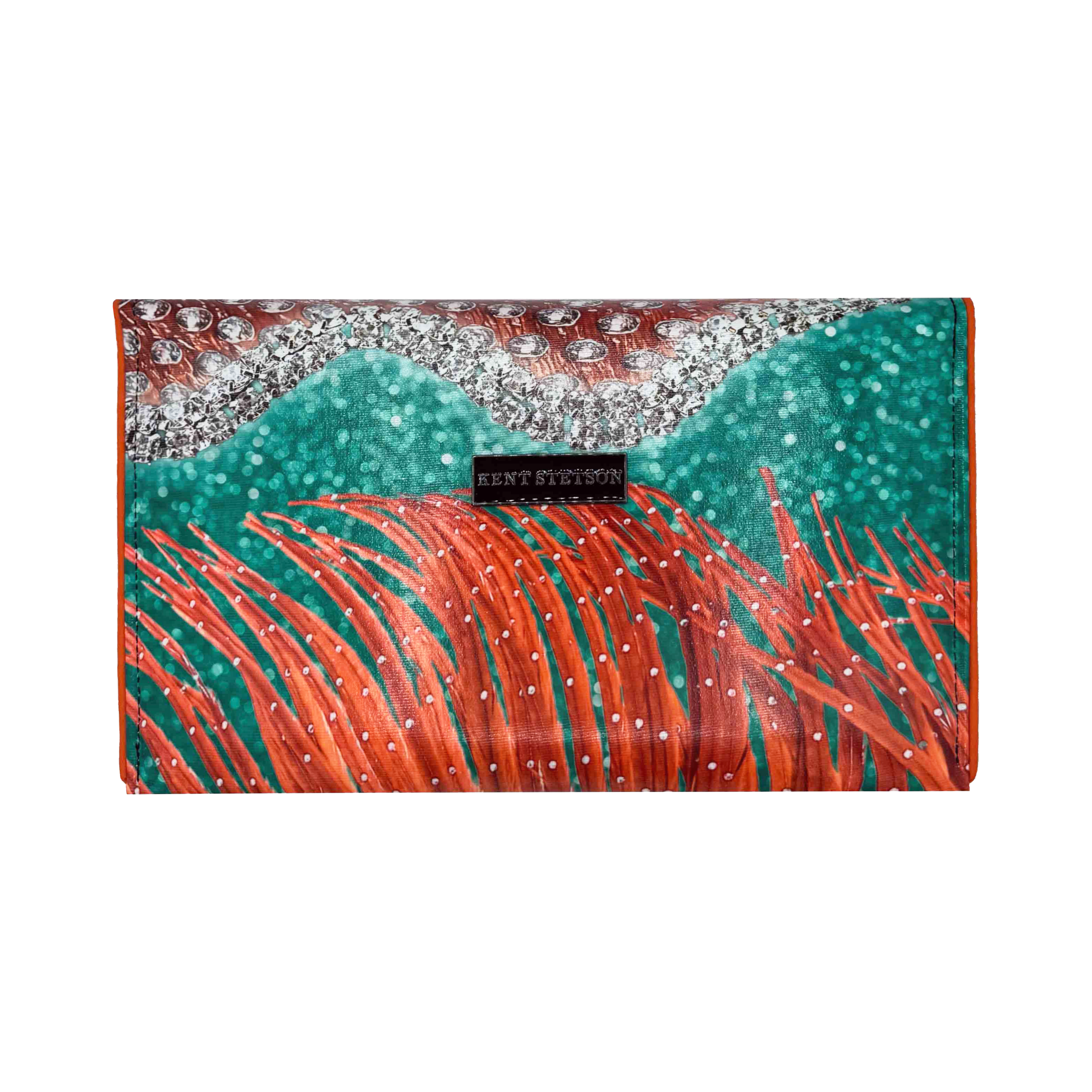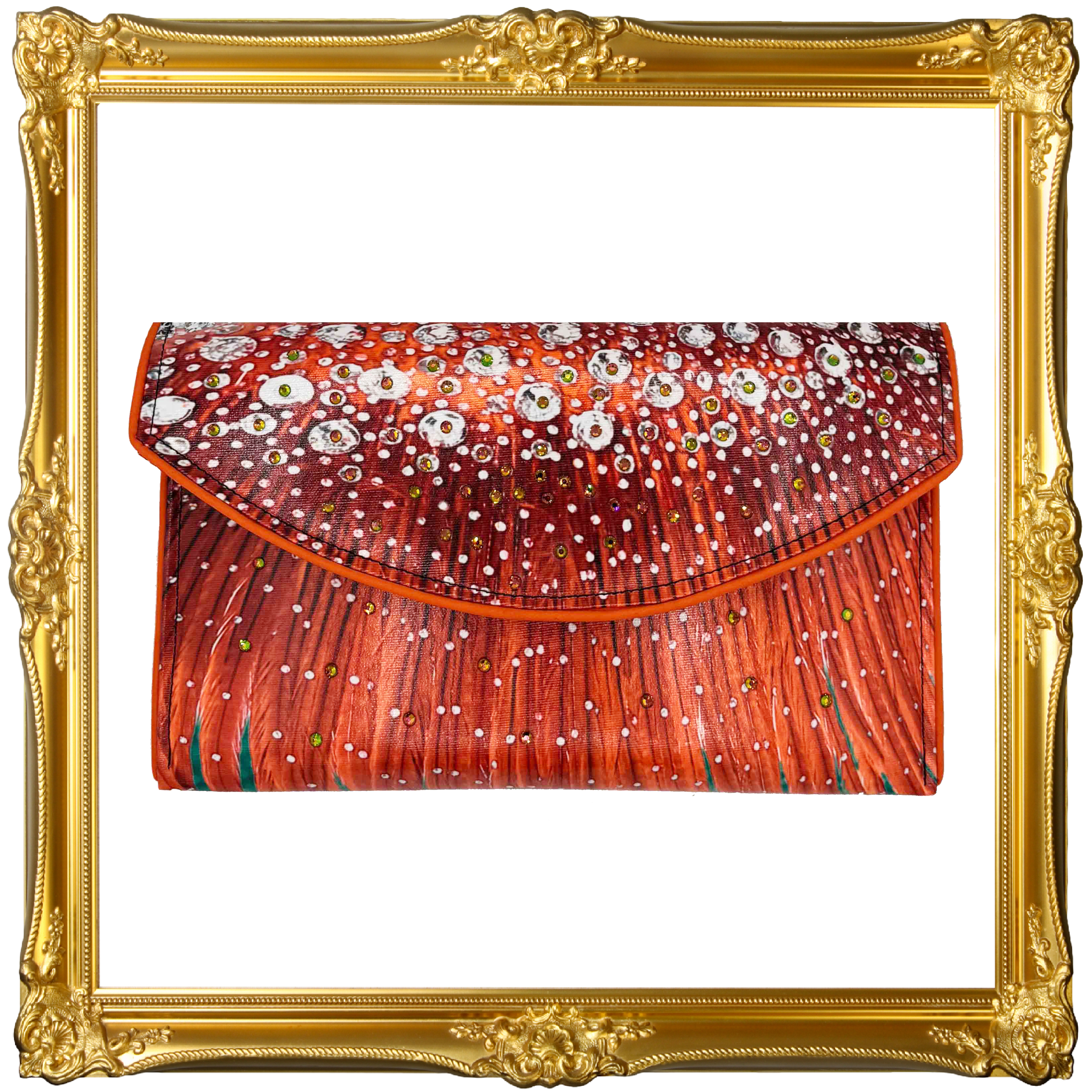 Get Kentmafied with this orange and green duo-tone showstopper featuring a spray of green and orange iridescent crystals.