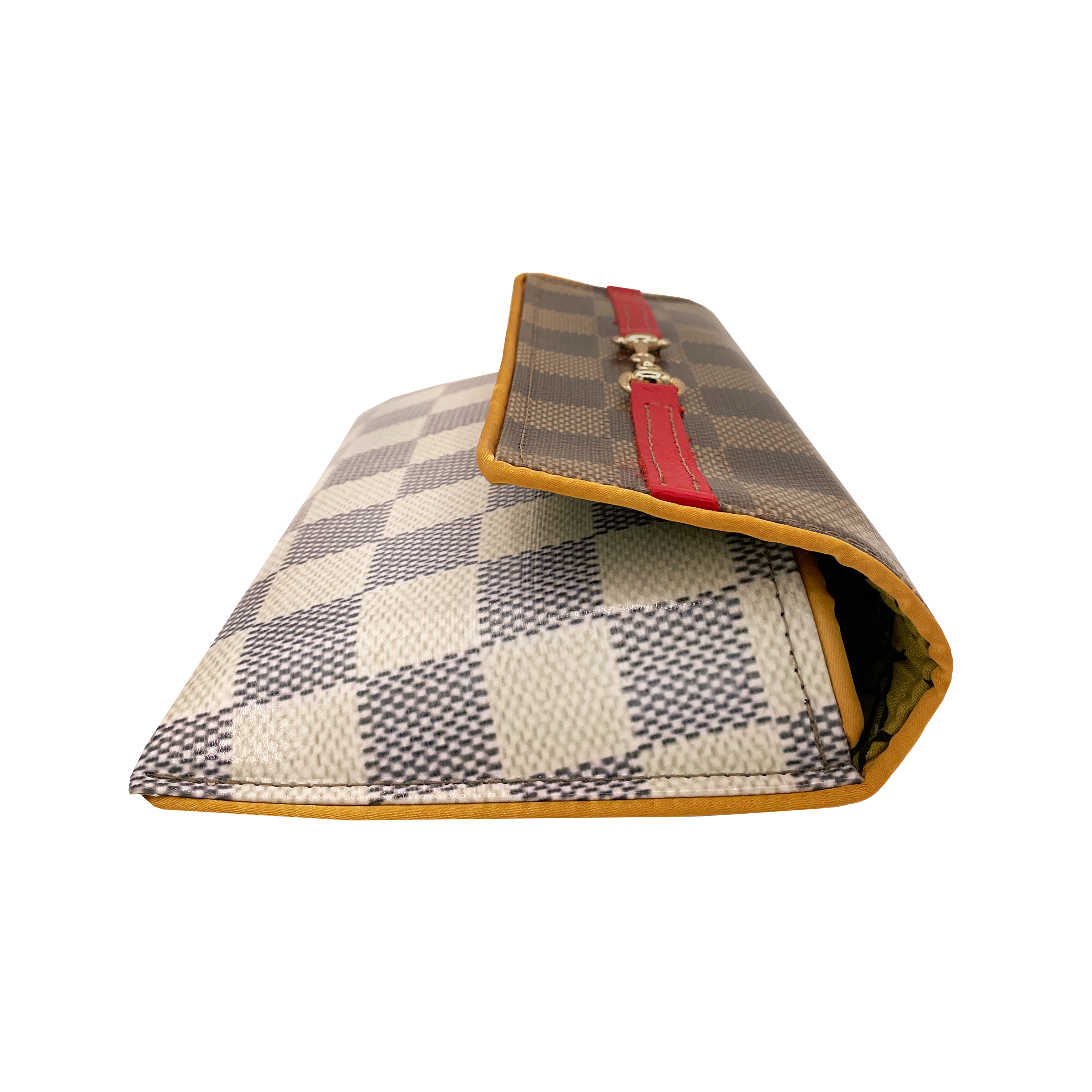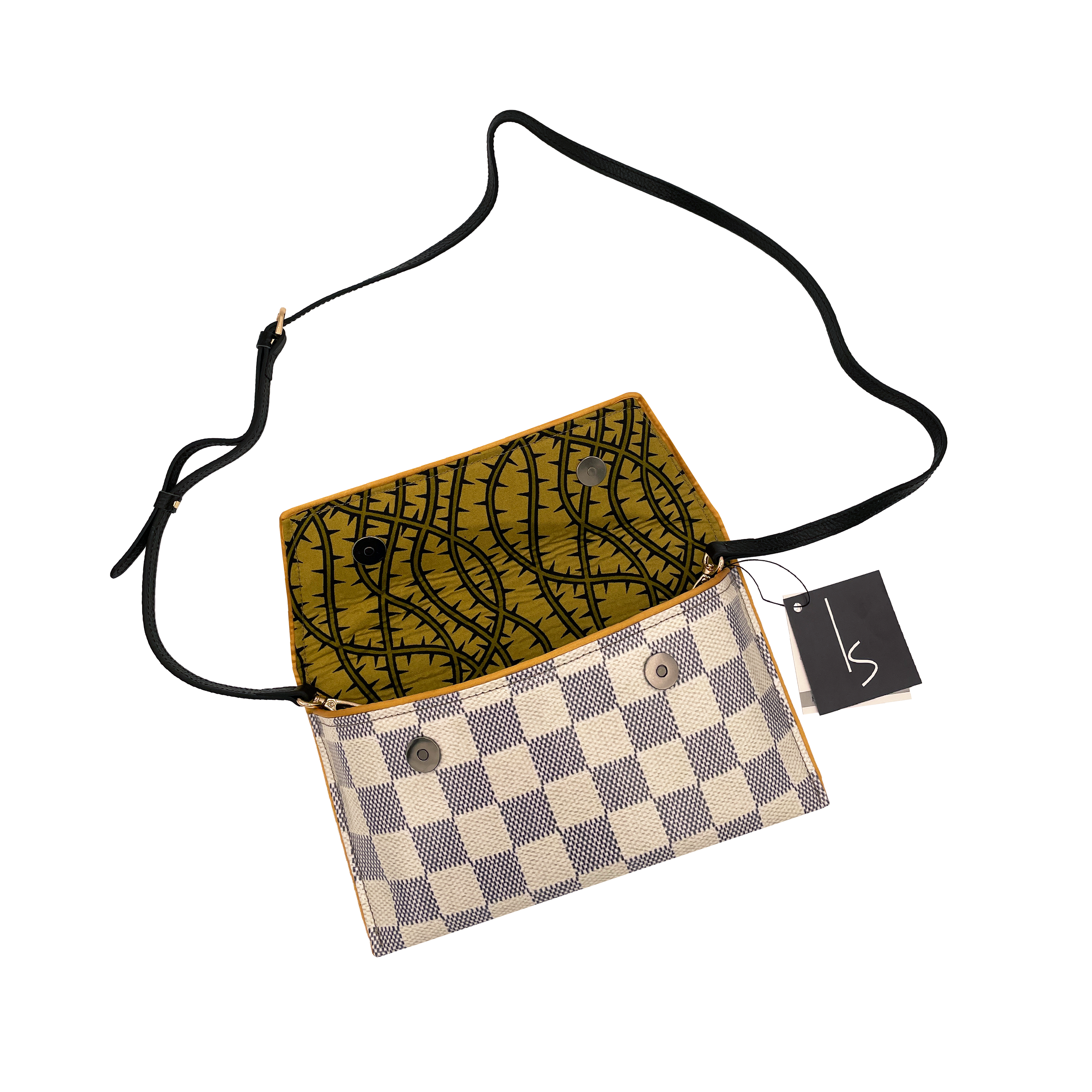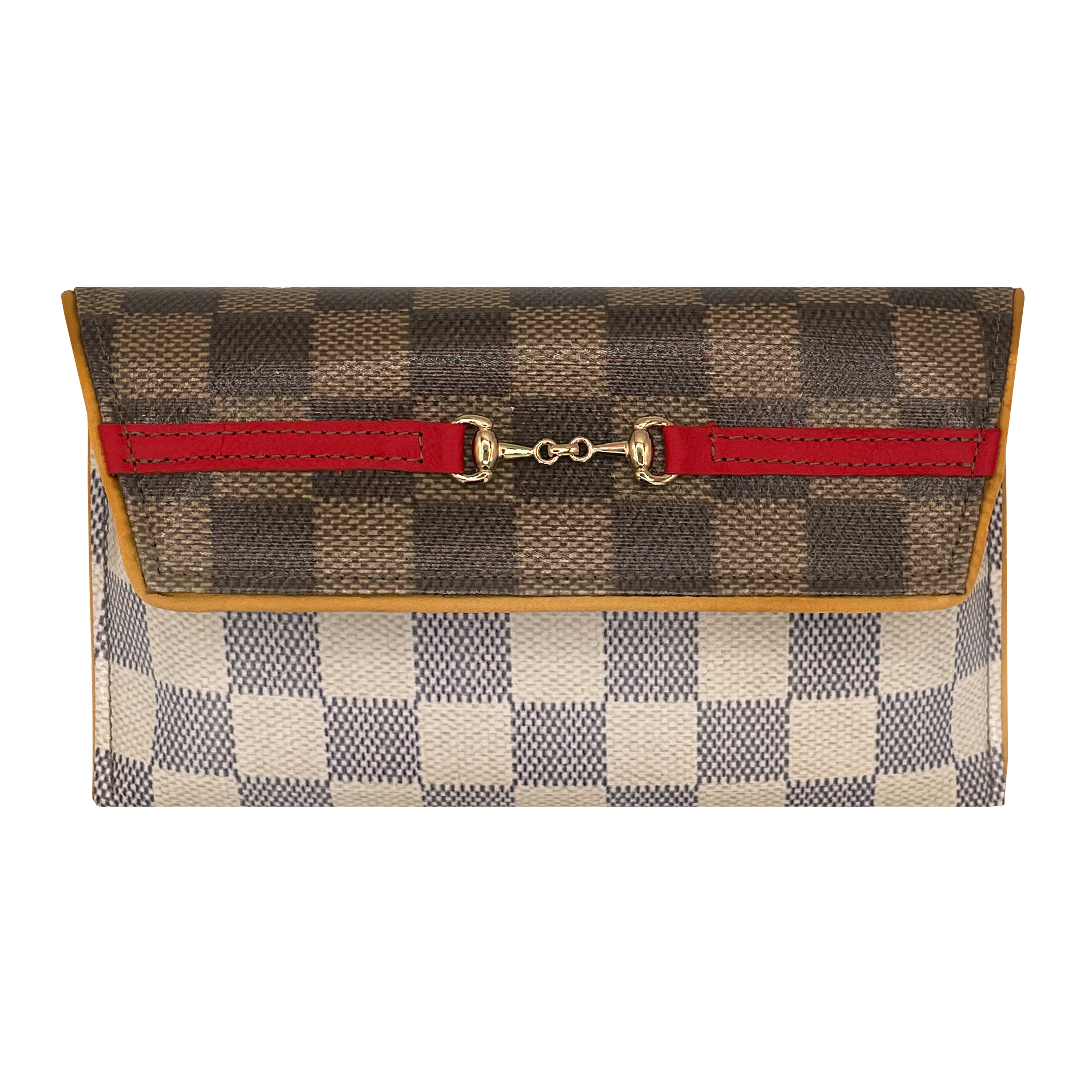 A fever-dream of personal and cultural references destined to make your going out an adventure of attention. We created this timeless checkerboard pattern, referencing my upbringing on a horse farm with a classic gold horse bit and red leather strap accent. Cruelty-free, made from luxury quality coated canvas. Includes a removable, luxe PU leather crossbody strap, a logo dust bag, a clear vinyl inner pocket, and is individually signed. The inside fabric may differ from what is pictured.