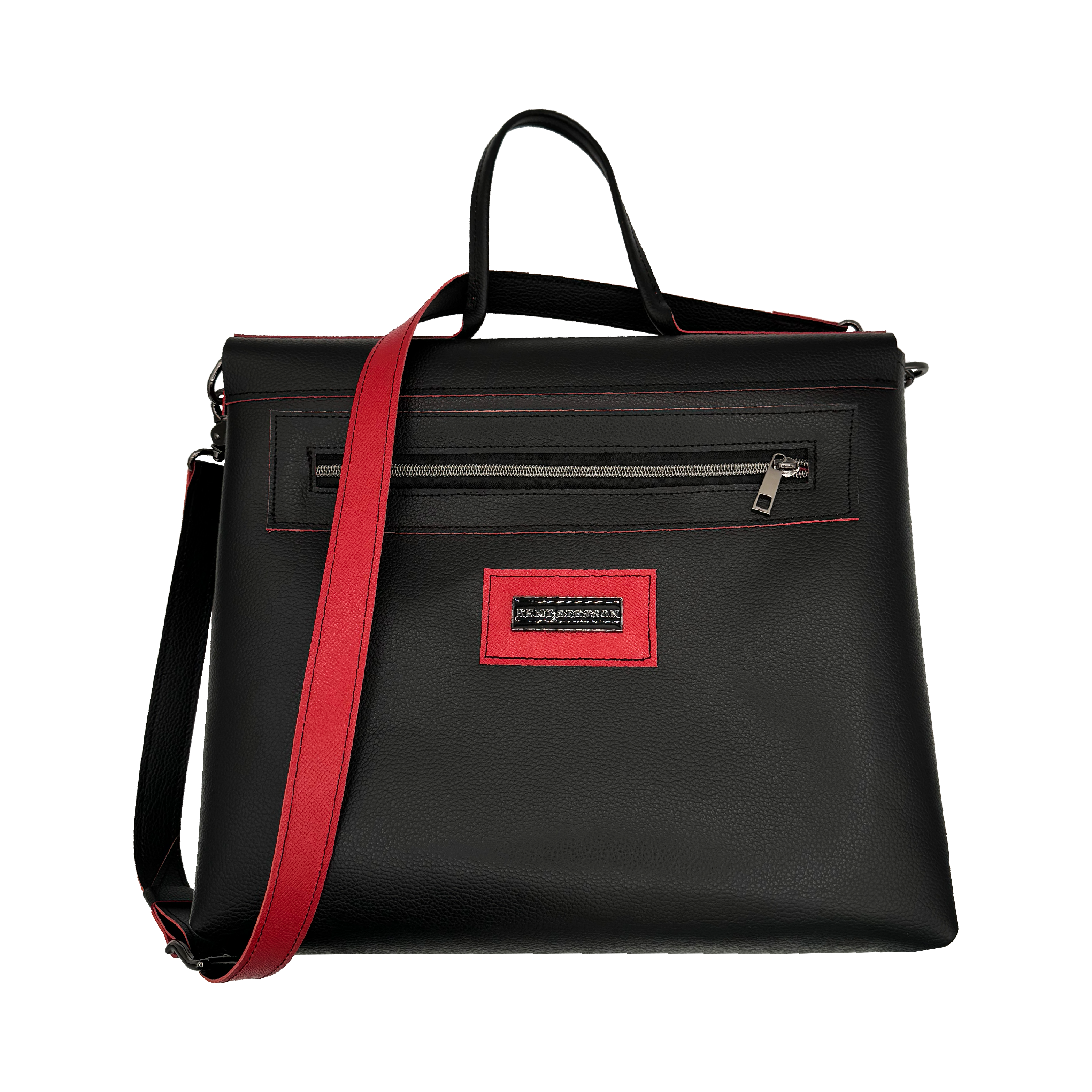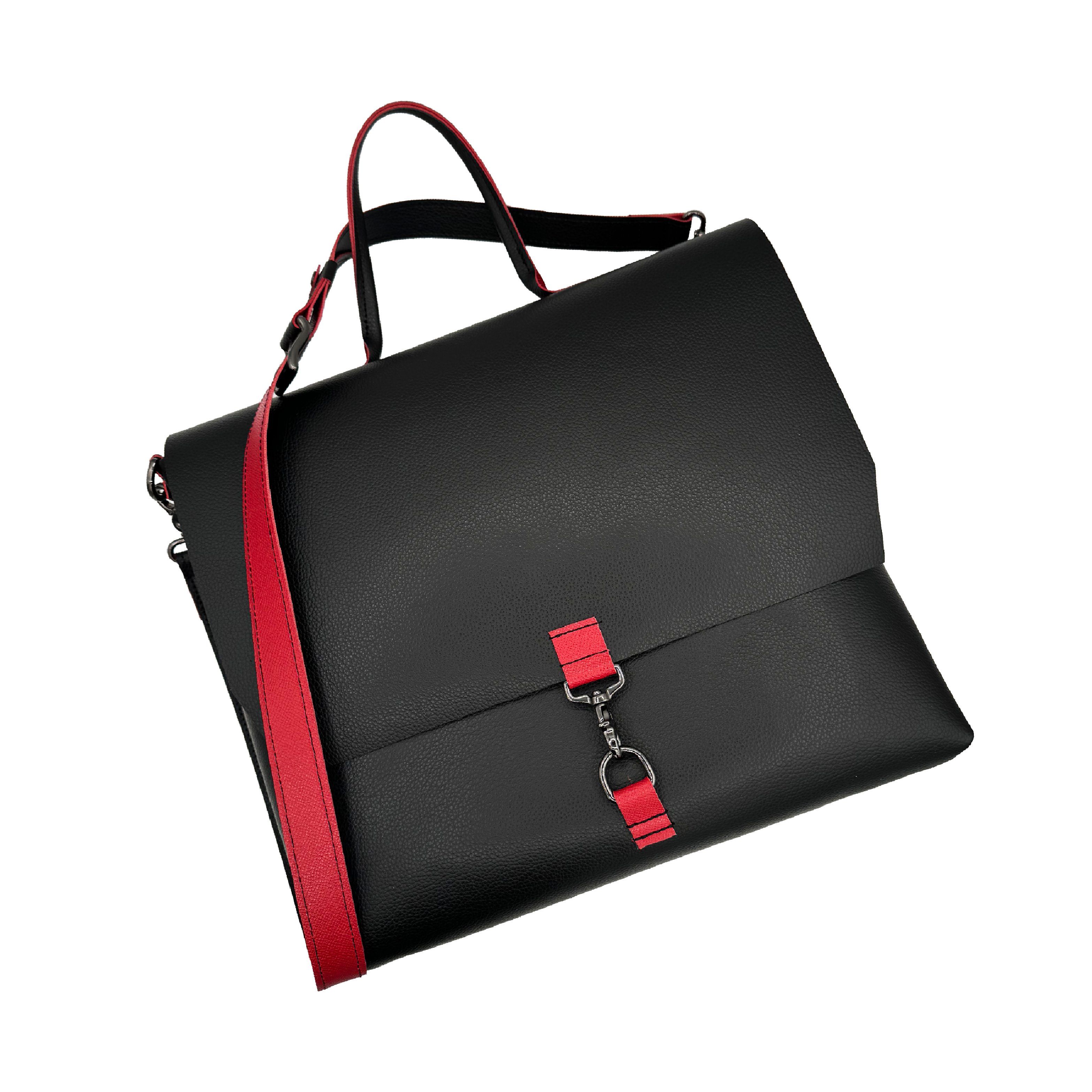 A satchel made with a bold crimson strap and clasps details that are not just for carrying, but to stand out! Removable strap, clasp closure, inner pocket, outside zip pocket.
