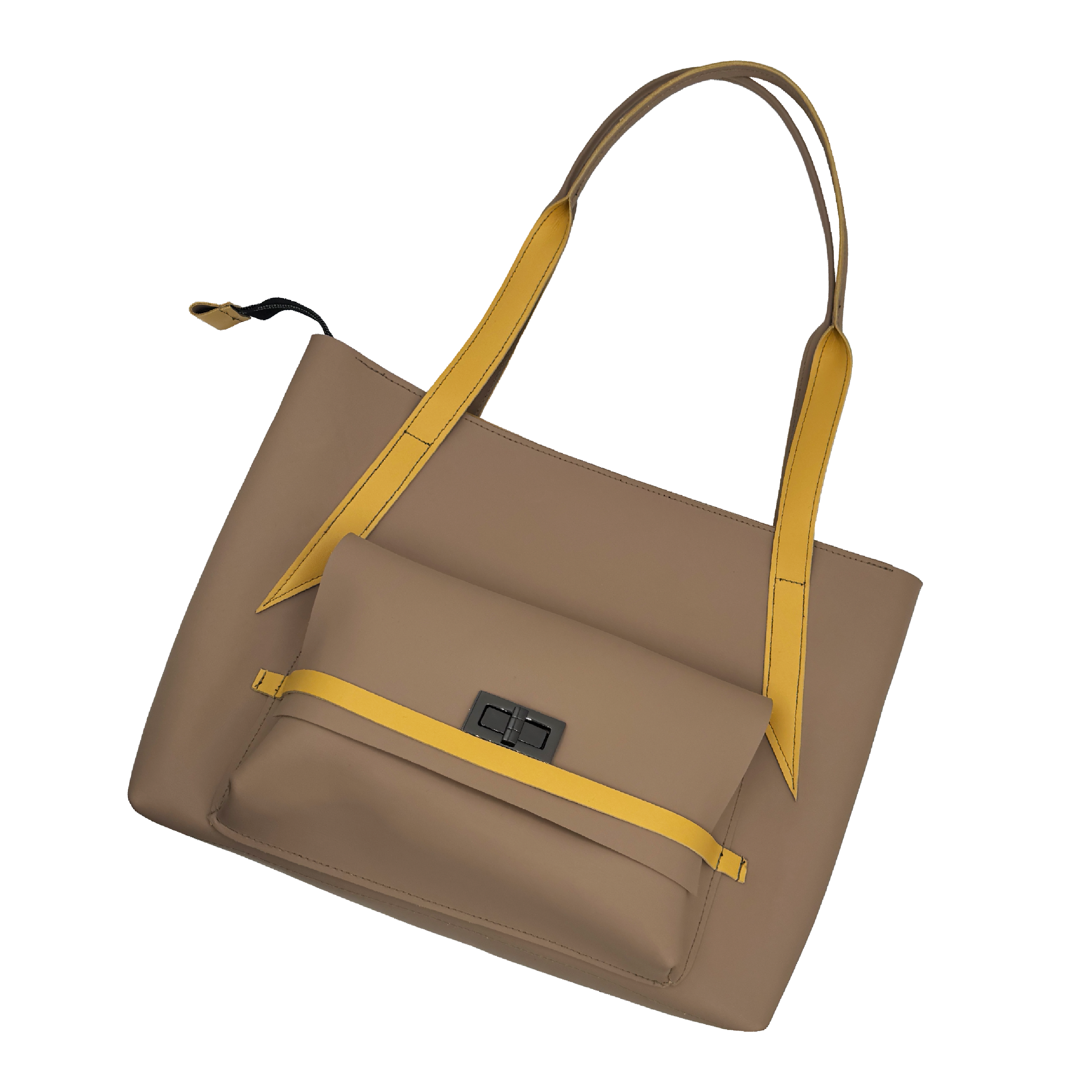 The Everyday Color Block Tote Clay & Ochre is perfect for the everyday luxury elegance you're looking for! Add a pop of sunshine with the ochre accents. Zipper closure, inner pocket, outside zip pocket.