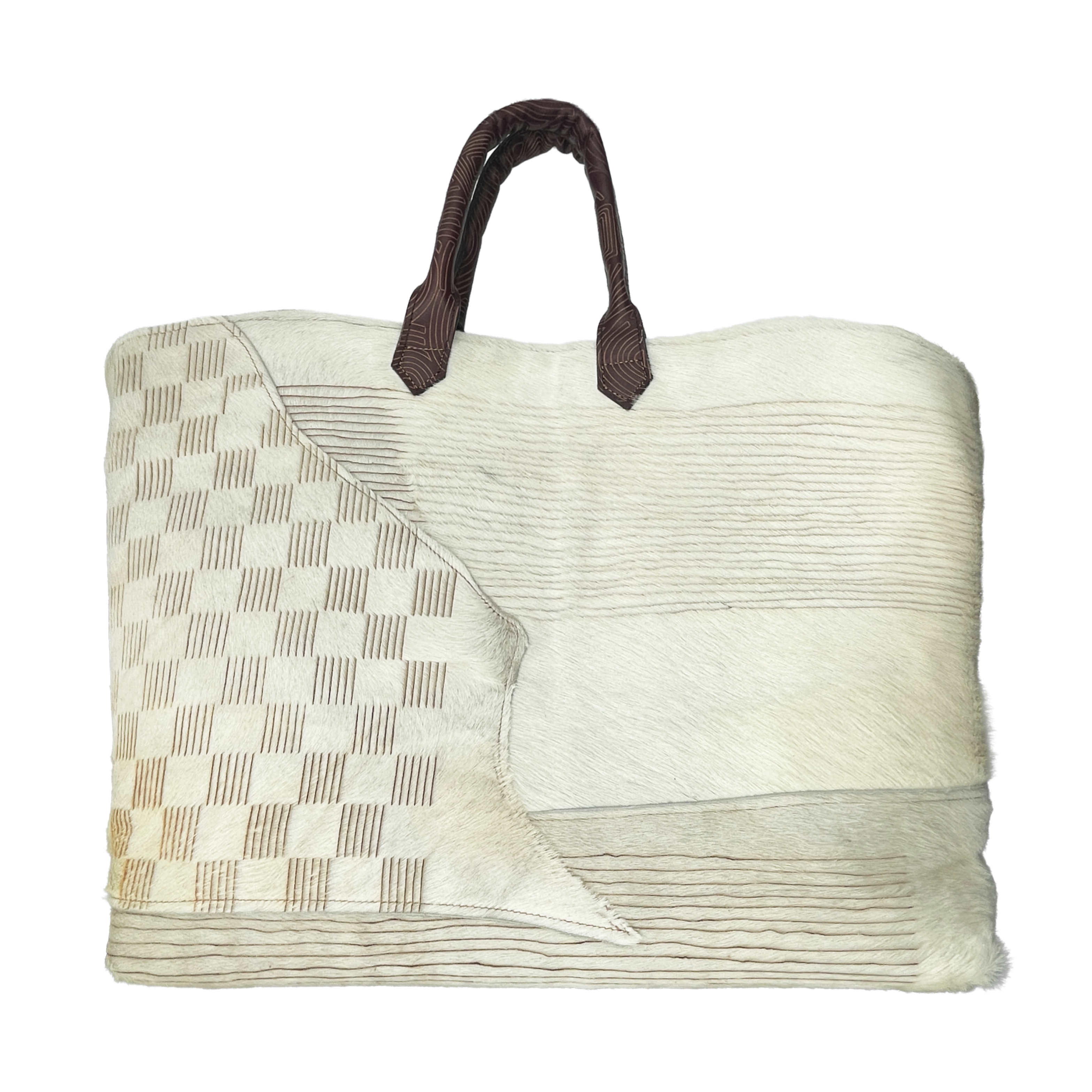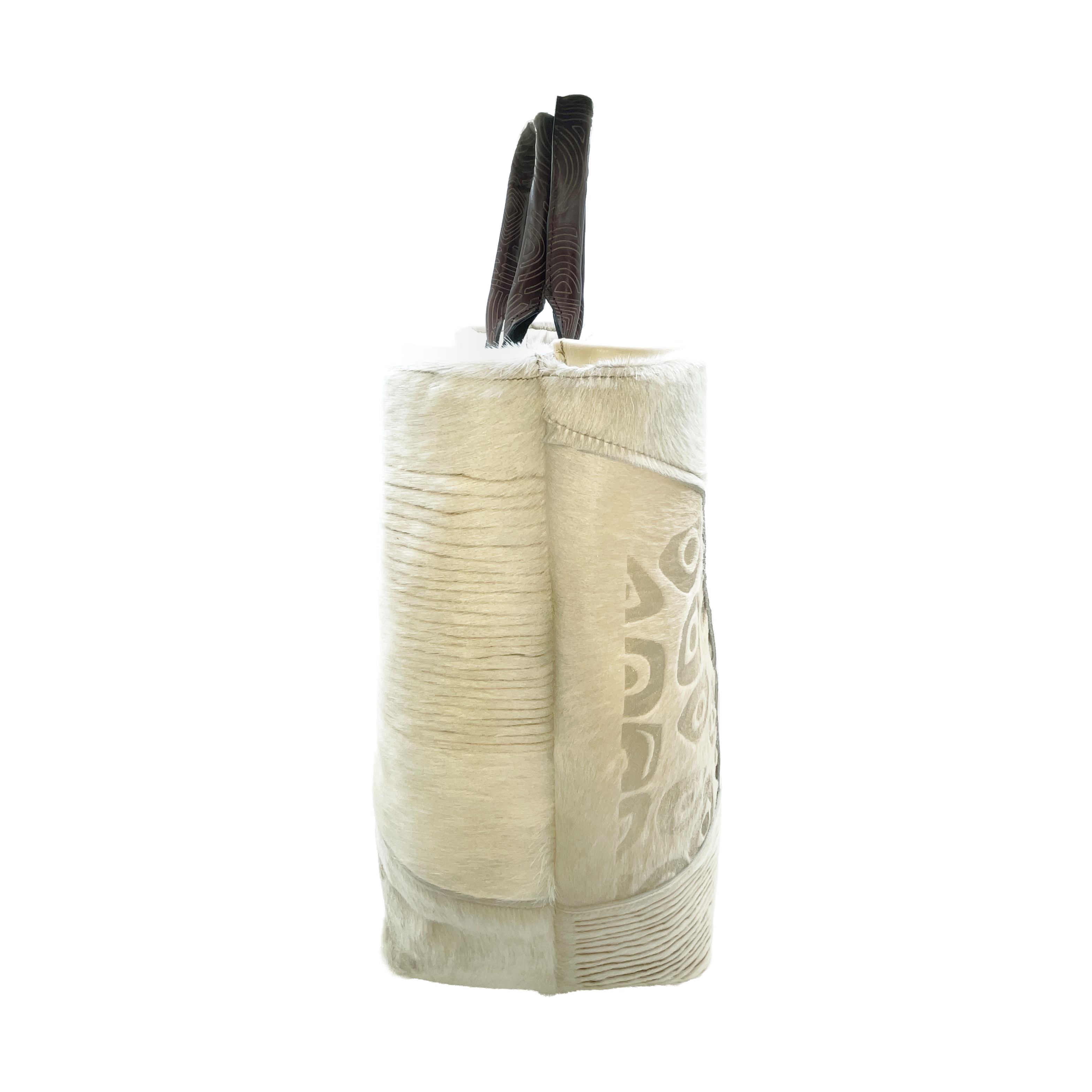 A playful blend of neutral textures and patterns makes this jumbo tote a warm and cozy addition to your wardrobe in any season. Magnet closure, inner pocket, outside zip pocket.