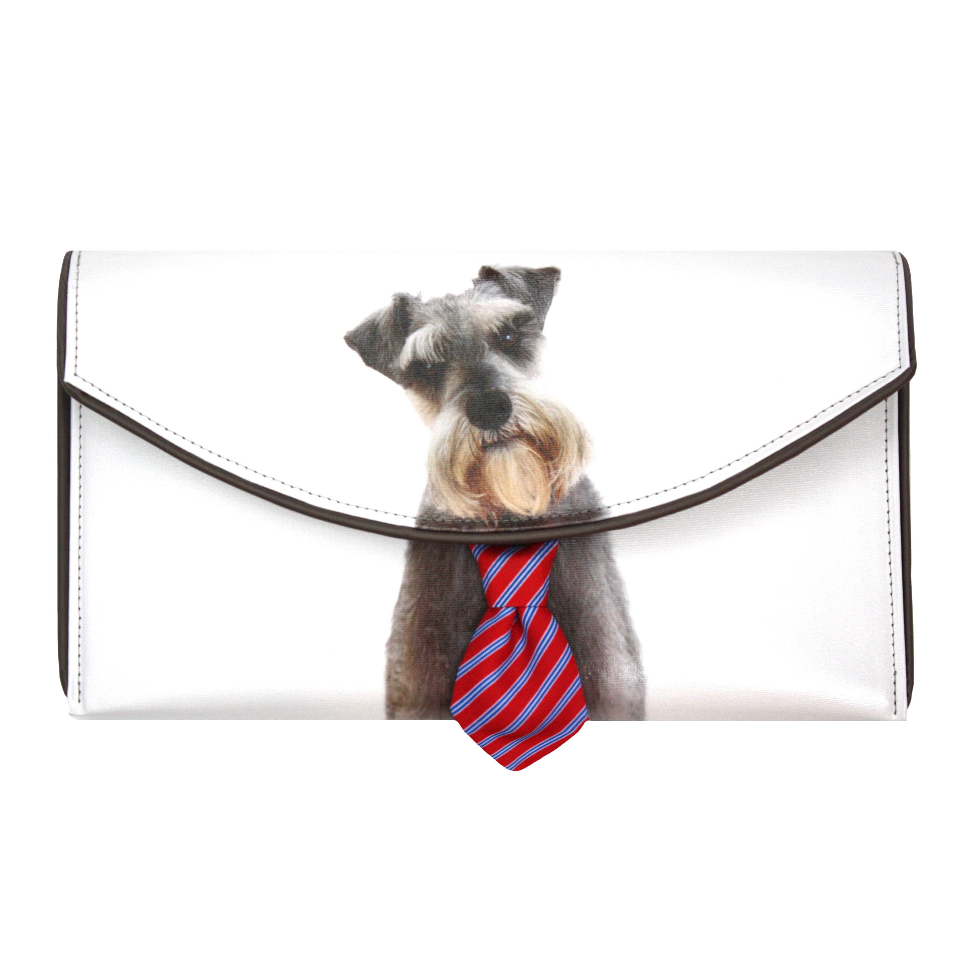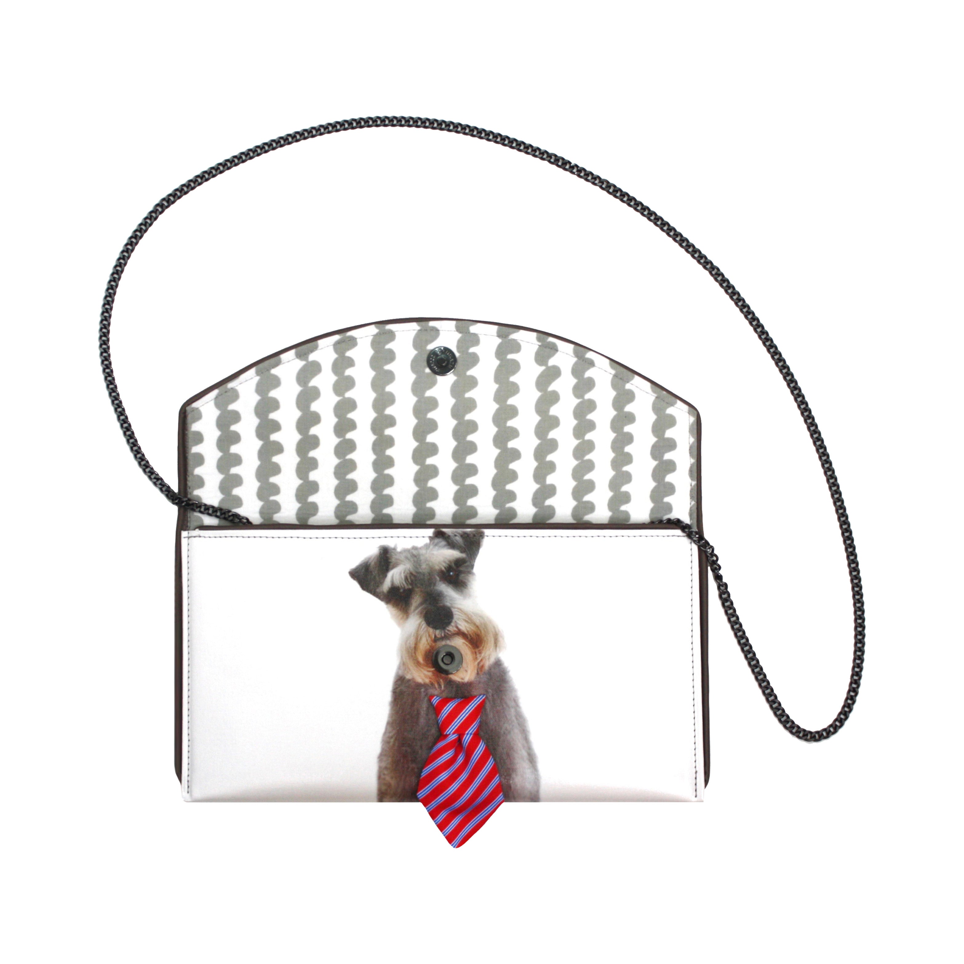 Play fetch with this Schnauzer clutch. Features a 3D necktie as an attachment. Hand crafted to perfection. Cruelty-free, made from luxury quality coated canvas. All bags come with a removable cross-body chain, logo dust bag, clear vinyl inner pocket, and are individually signed. Inside fabric may differ from what is pictured. Price includes shipping.