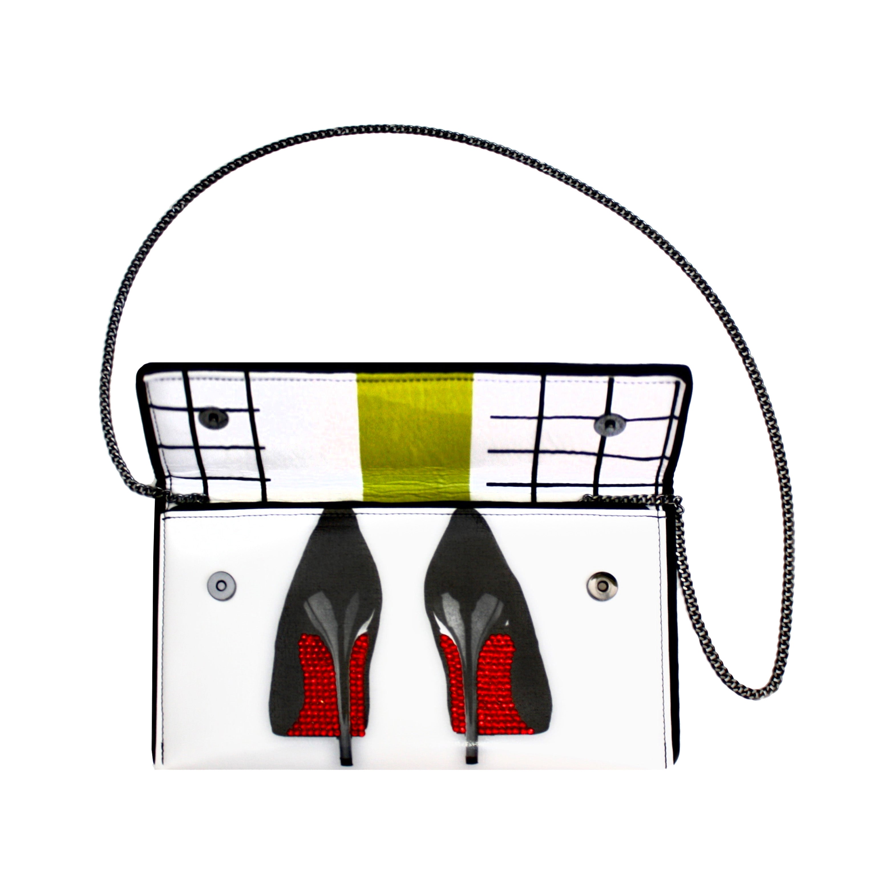 These shoes were made for walkin'. Accented in red crystal heels. Cruelty-free, made from luxury quality coated canvas. All bags come with a removable cross-body chain, logo dust bag, clear vinyl inner pocket and are individually signed. Inside fabric may differ from what is pictured.
